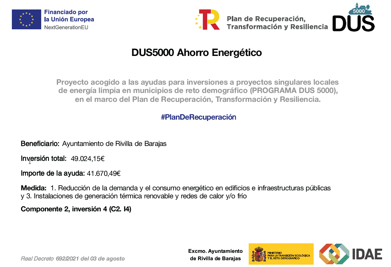 PROGRAMA DUS 5000. AYUDAS PARA INVERSIONES A PROYECTOS SINGULARES LOCALES DE ENERGÍA LIMPIA EN MUNICIPIOS DE RETO DEMOGRÁFICO